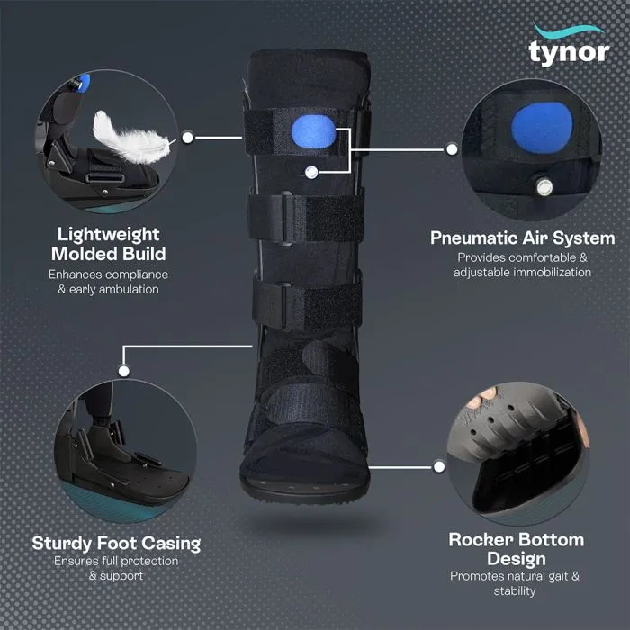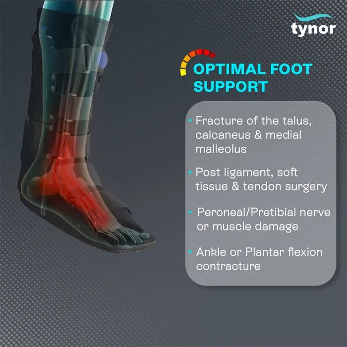 Designed to provide ankle deloading, immobilization and support to the fractured ankle/lower leg. Walker boot can be a substitute for a cast or can be used in case of early cast removal, It helps in early ambulation of the patient with ankle/lower leg fractures. With a wider rocker bottom, these boots promote a natural gait, reduced plantar pressure, enhanced stability and comfort to the lower leg. *Use this product under the guidance of a qualified doctor