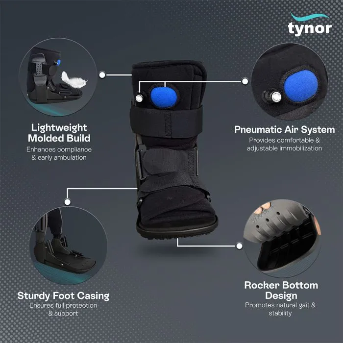 Designed to provide ankle deloading, immobilization and support to the fractured ankle/lower leg. Walker boot can be a substitute for cast or can be used in case of early cast removal, It helps in early ambulation of the patient with ankle/lower leg fractures. With a wider rocker bottom, these boots promote a natural gait, reduced plantar pressure, enhanced stability and comfort to the lower leg. *Use this product under the guidance of a qualified doctor
